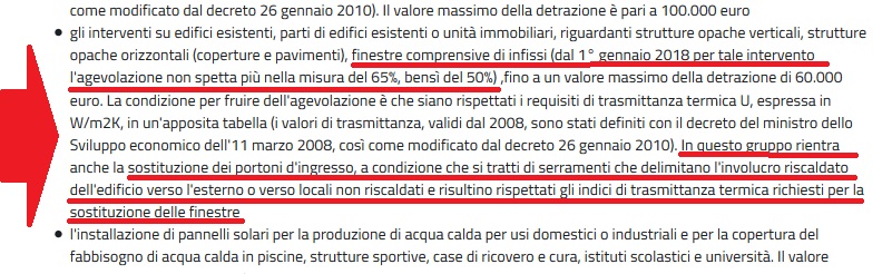 Nella fretta il correttore si dimenticava nuovamente dei "portoni di ingresso" che, stando al sito, godrebbero anche oggi della detrazione del 65%. Sic! Forse lì si pensa che le porte di ingresso non siano infissi.