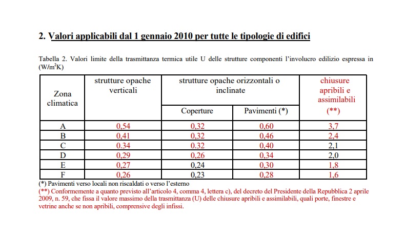 -i valori imposti dal Decreto CAM-Criteri Ambientali Minimi obbligatori dallo scorso 13 febbraio 2017 per interventi di ristrutturazione importante di secondo livello e di riqualificazione energetica riguardanti l'involucro edilizio di edifici della Pubblica Amministrazione e che ha anticipato di due anni i valori di trasmittanza termica previsti per il 2019 dal Decreto Requisiti Minimi del 26 giugno 2015.
