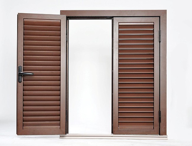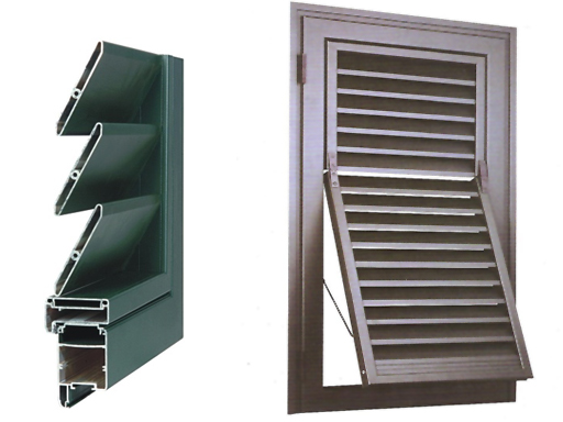 Persiane per Finestre e Porte costruite in profili di Alluminio con stecche alla Fiorentina, nei modelli con o senza sportelli a sporgere "gelosia", realizzabili: su telaio perimetrale portante e/o con bandelle e cardini a murare